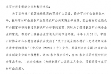 為了宣傳推廣我們國先進適用的石材礦山裝備,提升石材礦山智能化水平,推動石材礦山裝備產業及綠色礦山向更高水平發展,配合石材行業綠色礦山國家標準的制訂及相關礦山標準的宣貫,同時為了摸清我國礦山裝備企業…