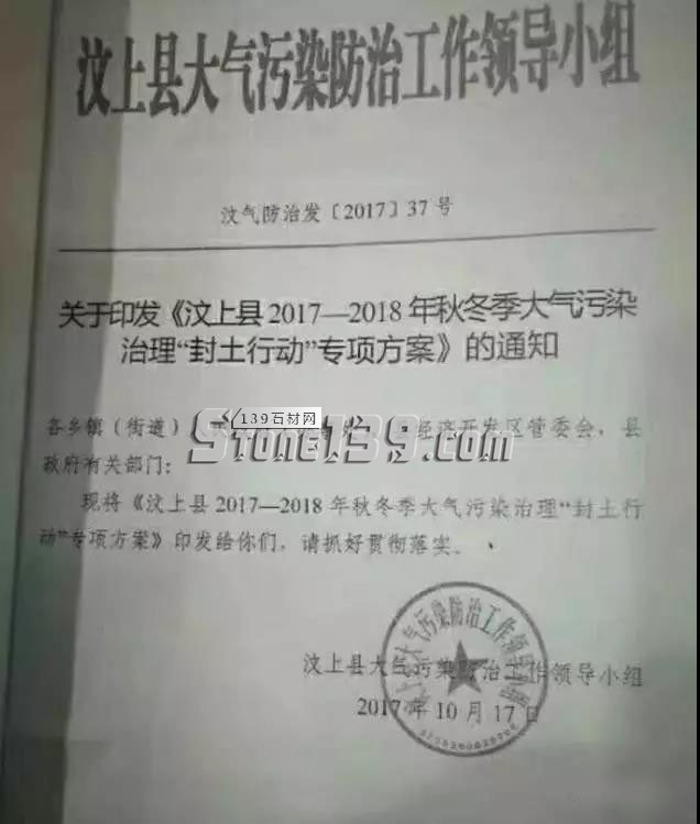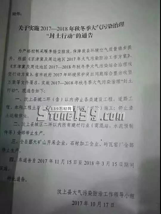 三、全縣露天礦山開采企業、石材加工企業、磚瓦窯廠全部停止生產。