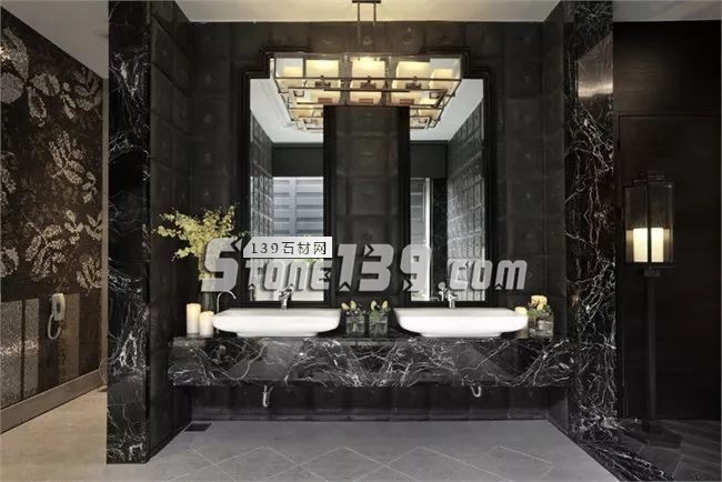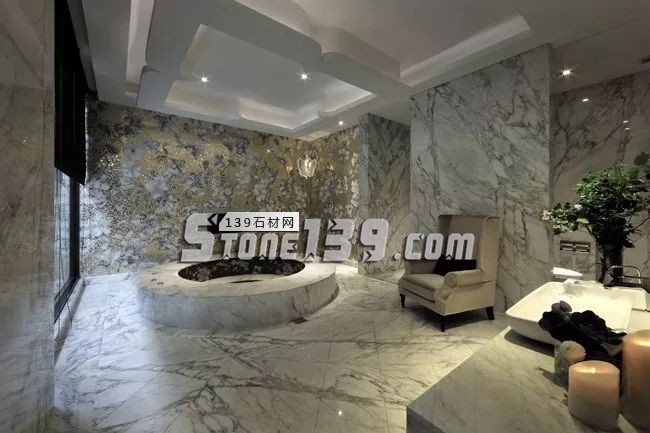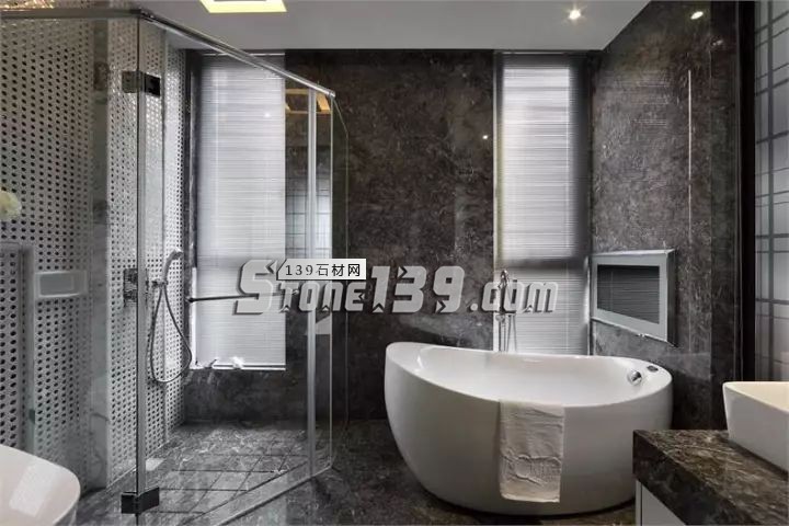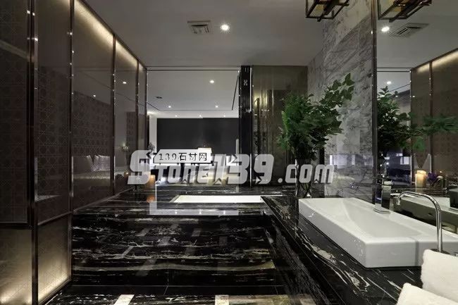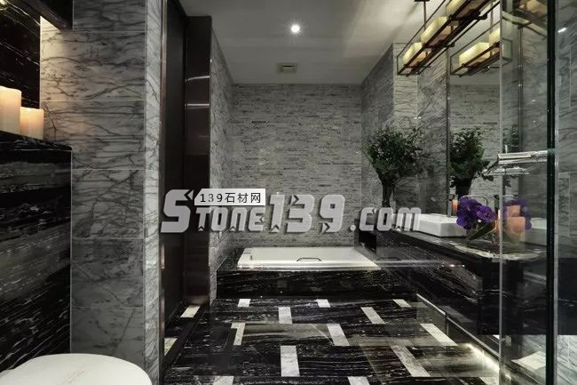 浴室中縱橫交錯的大理石紋,猶如旅途中的足跡