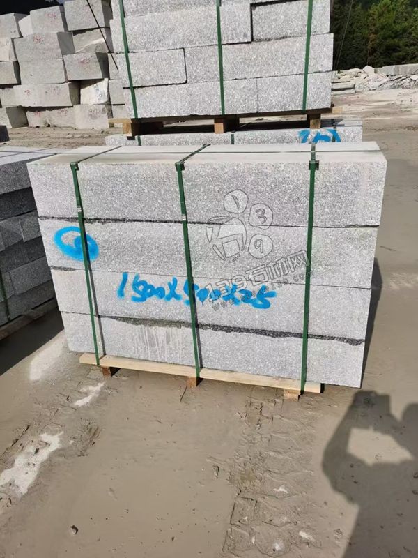 芝麻灰花崗巖路沿石(路緣石),具體為大號規(guī)格的加厚 / 加重型路沿石。? 核心用途 這類大塊的路沿石主要用于市政主干道、高速公路、收費站或大型廣場的邊緣收口。 重型防護:體積更大、重量更重,抗壓能力強,能有效承受大型車輛的碾壓及撞擊,保護路面邊緣。 高標準路建:常用于對工程質(zhì)量要求較高的國家重點工程,作為車道與人行道 / 綠化帶的分界。 排水與導水:側面雖為機切平整面,但安裝后與路面形成坡度,可引導雨水流向排水口。 產(chǎn)品特征 規(guī)格標識:圖中藍色噴漆標注的 1500×500×250 代表尺寸為 長 1500mm × 寬 500mm × 高 250mm(1.5 米長,半米高),屬于超大規(guī)格。 材質(zhì):采用硬度極高的芝麻灰花崗巖,耐酸堿、耐老化,無需頻繁維護。 工藝:表面通常是機器切割的平整面(機切面),棱角筆直,保證安裝后線條流暢美觀。